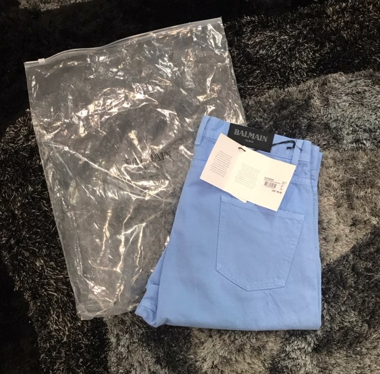 Ripped at the front, six pockets, belt loops, dropped crotch