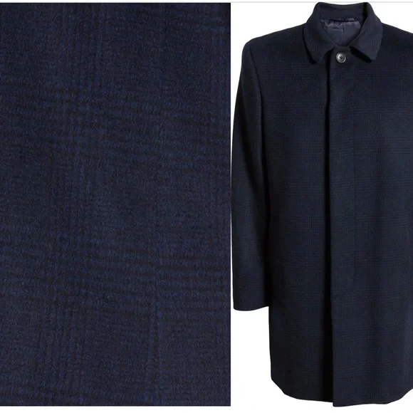 Hart Schaffner Marx Turner Plaid Wool Blend Top Coat- brand new with tags! - size 42RHandsome tonal plaid defines a well-made topcoat crafted from a water-repellent wool blend for exceptional versatility.• 38" length (size 42R)• Covered button closure• Slant pockets; interior pockets• Lined• 80% wool, 20% nylon• Dry clean• Imported• Men's Clothing• Item # 5449657Box54