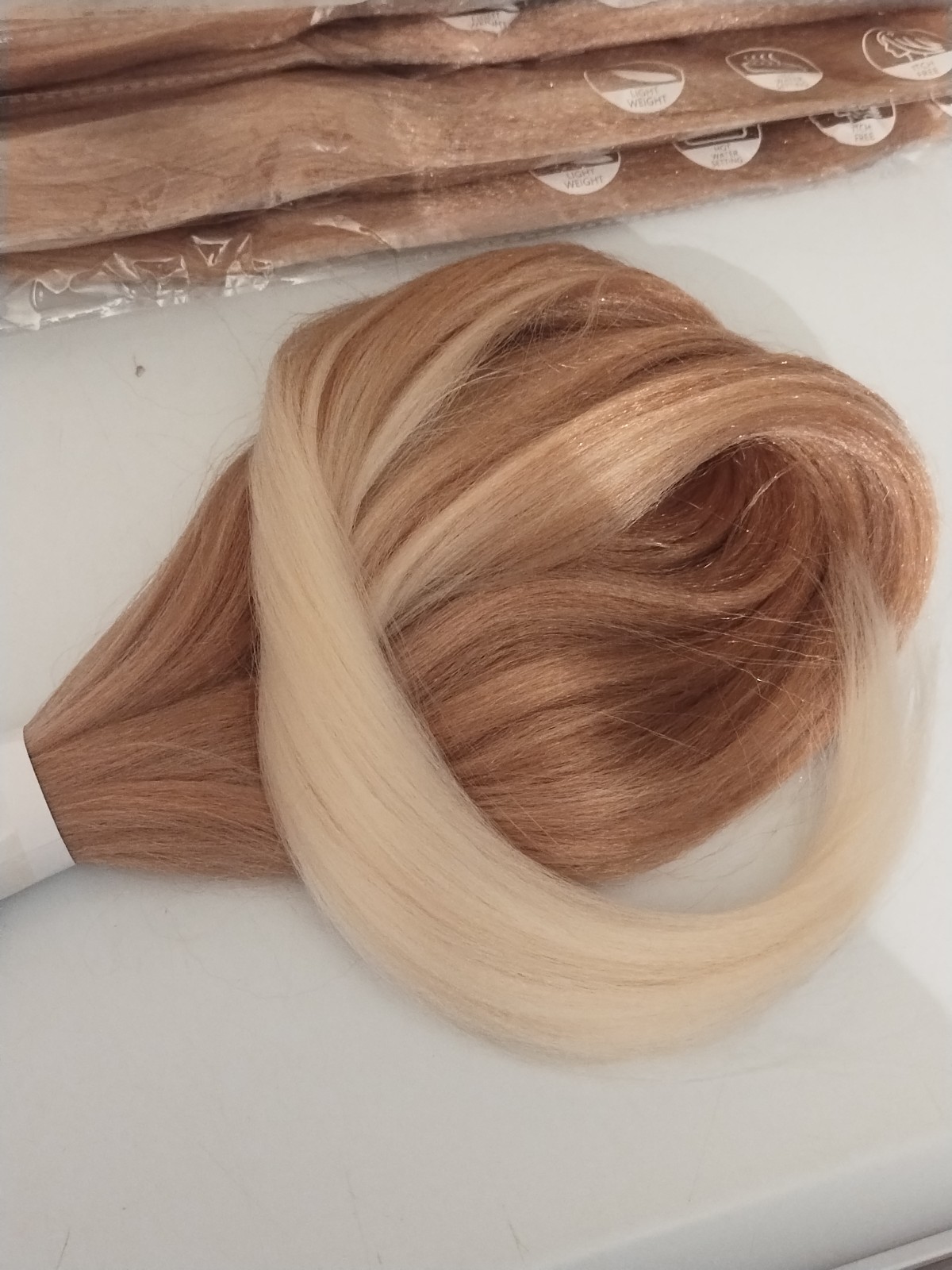 Bundle lot of X6 pre-stretched Yaki texture synthetic braiding hair extensions. Blonde to White gradient